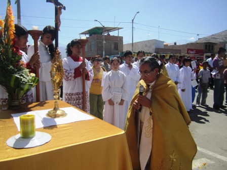Chimbotenlinea.com (Redacción Central).- El fervor religioso no fue ajeno a los fieles del distrito de Moro, quienes ayer por la  mañana, con mucho entusiasmo, participaron de la Ceremonia Solemne del Cuerpo y la Sangre de Cristo (Corpus Cristhi).