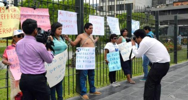 Chimbote en Línea.- Cuatro mujeres y el vocero de la zona costa de “Puro Áncash”, Luis Chamorro Montoya, se encadenaron en el frontis del Jurado Nacional de Elecciones (JNE) en Lima para demandar la entrega de la credencial a su líder Waldo Ríos Salcedo para que pueda asumir la presidencia de esta región.